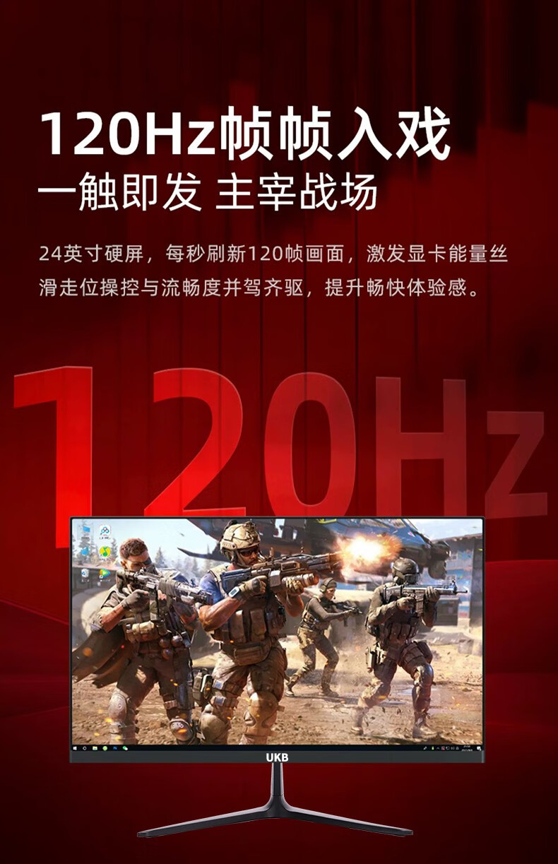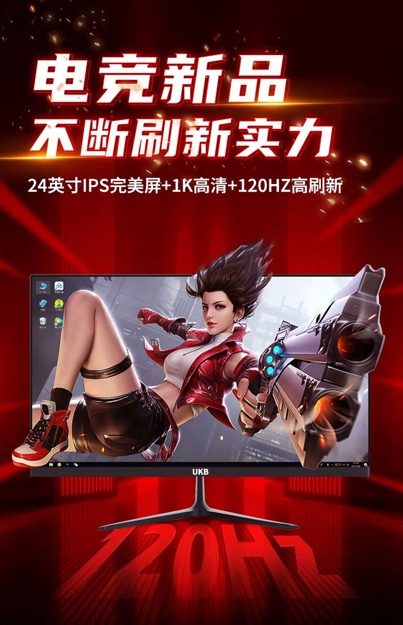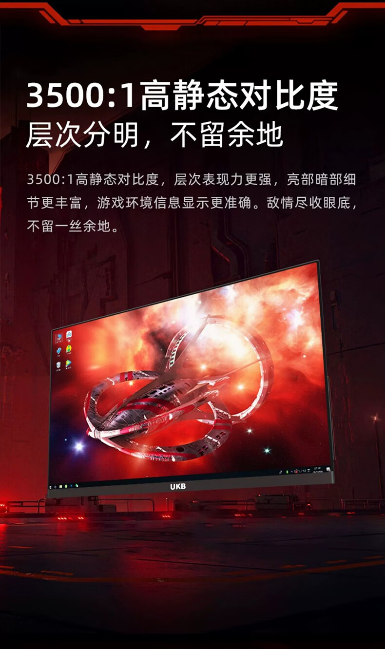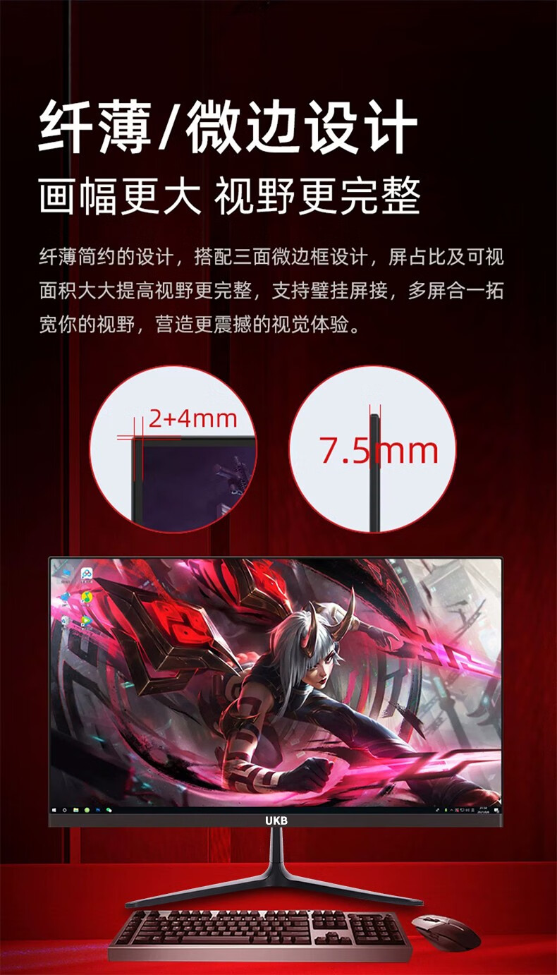 UKB显示器电脑显示屏24英寸超薄微边框高清2k电竞游戏屏幕