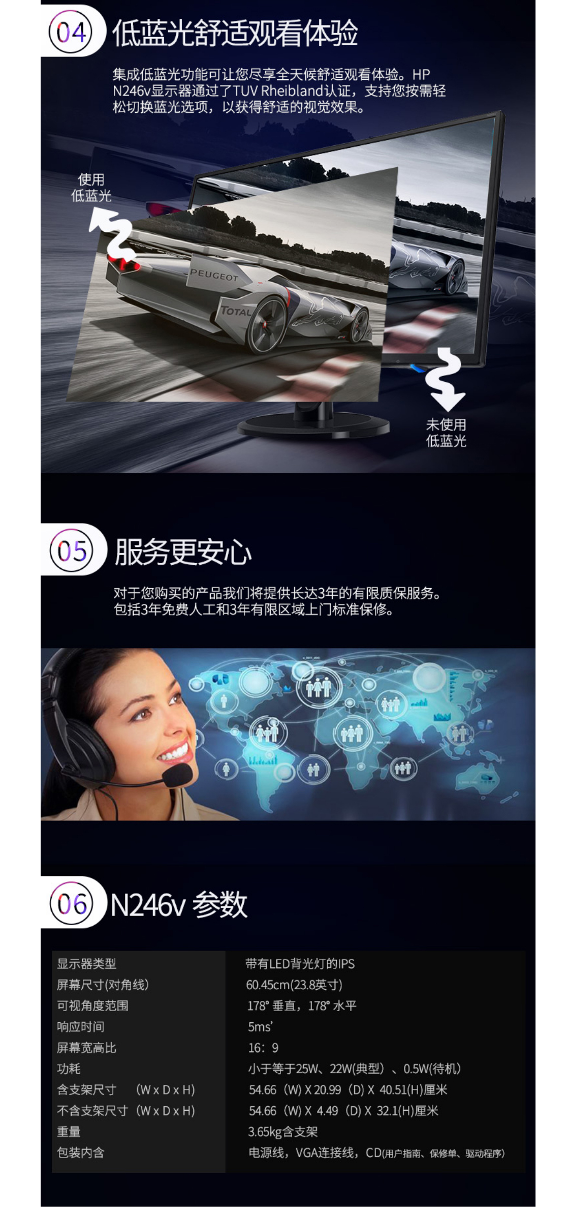 惠普(HP) N246V 23.8英寸液晶显示器 商用宽屏背光显示屏 VGA DVI HDMI (23.8英寸) (23.8英寸)